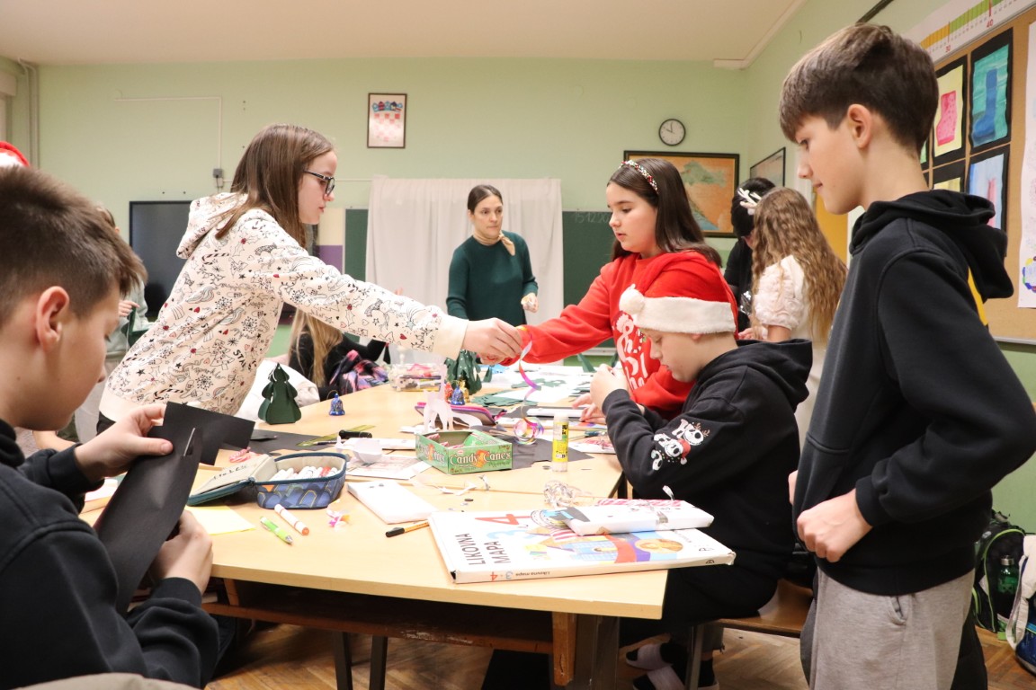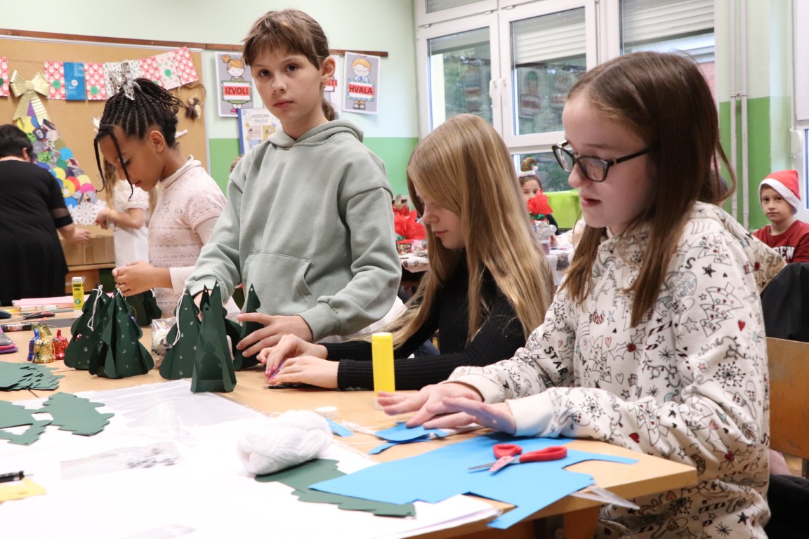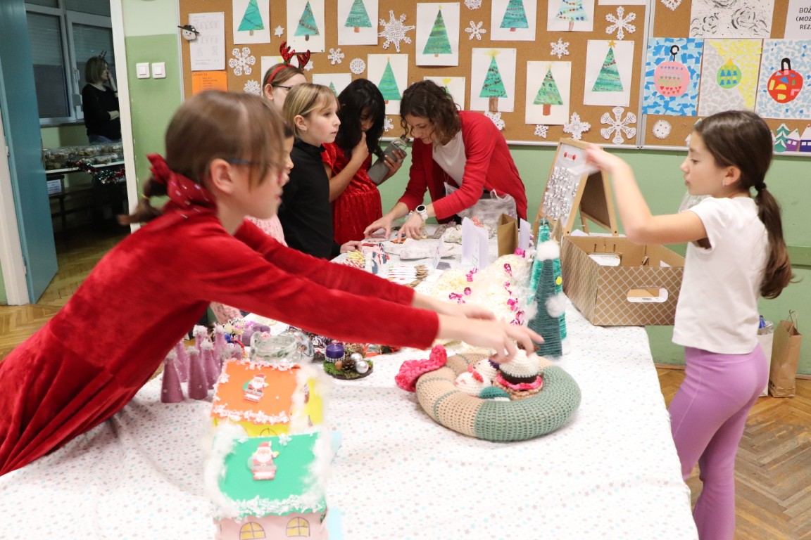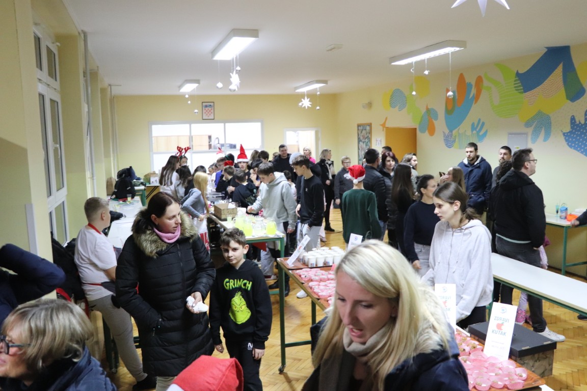 Nakon odrađenih dvosatnih radionica, otvorili smo vrata škole svim dobrodošlim posjetiteljima – našim dragim roditeljima i prijateljima škole. Sav rad i trud nije se odvijao samo u prostorima škole već i u toplini doma jer su vrijedne roditeljske ruke ispekle ukusne i mirisne božićne kolače, a pripremljena je i tombola. Najvažnije od svega – ovaj uspjeli božićni sajam imao je i humanitarnu svrhu –prikupljene donacije idu Udruzi oboljelih od leukemije i limfoma.