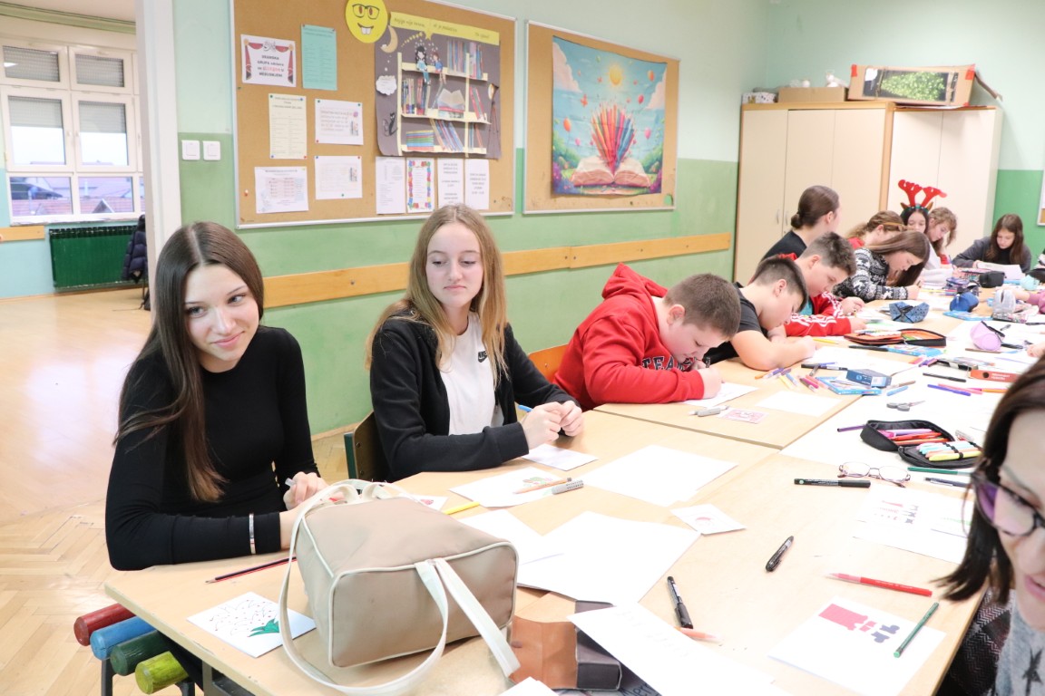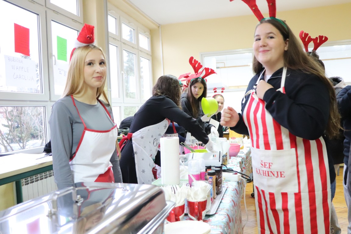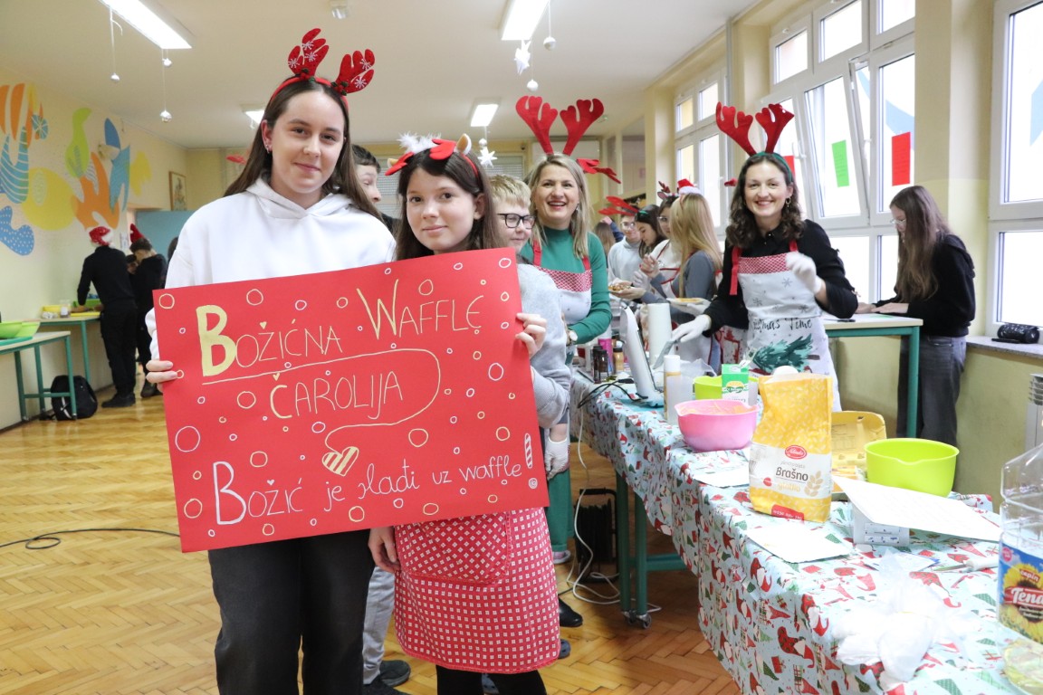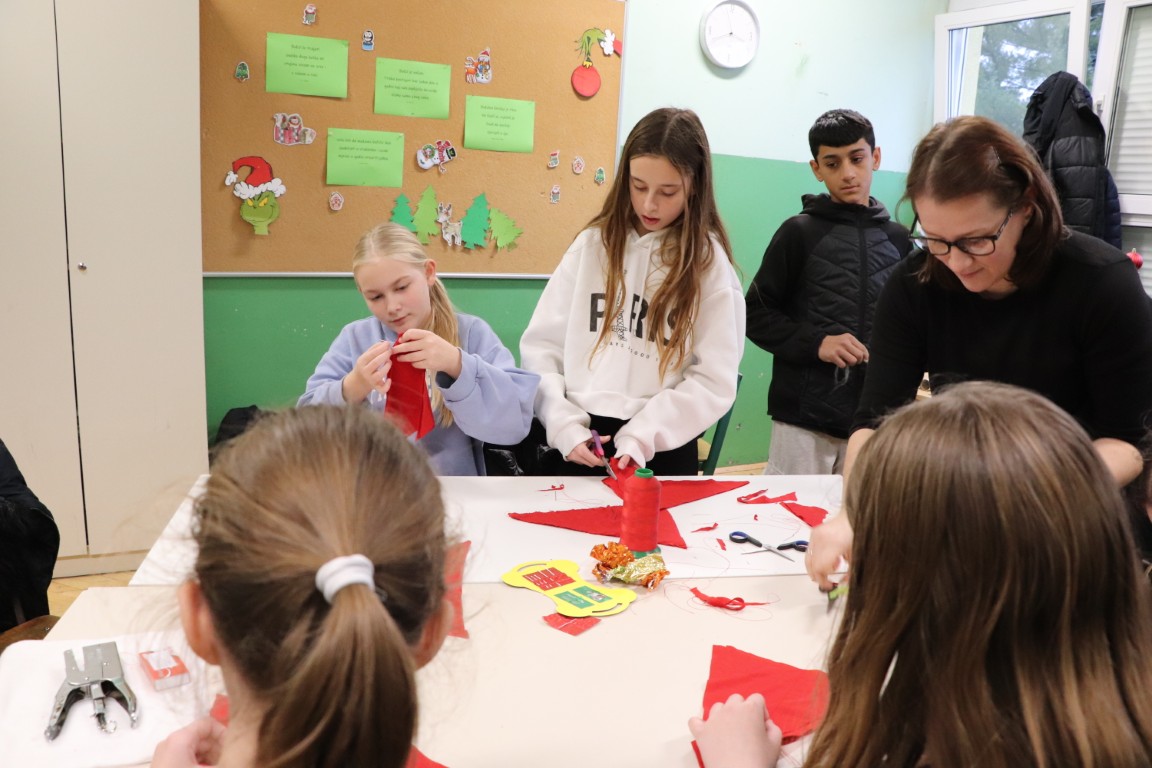 Nakon odrađenih dvosatnih radionica, otvorili smo vrata škole svim dobrodošlim posjetiteljima – našim dragim roditeljima i prijateljima škole. Sav rad i trud nije se odvijao samo u prostorima škole već i u toplini doma jer su vrijedne roditeljske ruke ispekle ukusne i mirisne božićne kolače, a pripremljena je i tombola. Najvažnije od svega – ovaj uspjeli božićni sajam imao je i humanitarnu svrhu –prikupljene donacije idu Udruzi oboljelih od leukemije i limfoma.