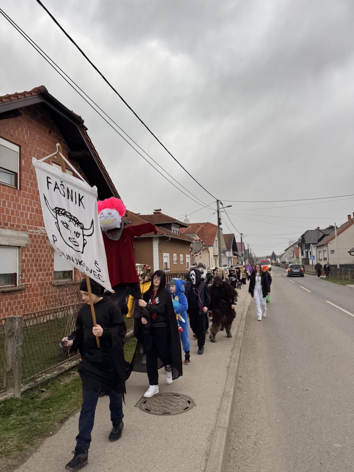 U utorak, 17. veljače 2026. godine, po naizgled sunčanom vremenu, krenula je fašnička povorka ulicama Dunjkovca i Pretetinca uz pratnju vatrogasaca. Zvižduci, veselje, šarene boje i odlična energija orili su se selima. Četvrtaši su nosili Fašnika i zastavu te predvodili povorku u pratnji svojih učiteljica. Ubrzo ih je iznenadila jaka ledena kiša, no nisu se predali jer su se veselili sočnim krafnama koje su ih čekale u školi.