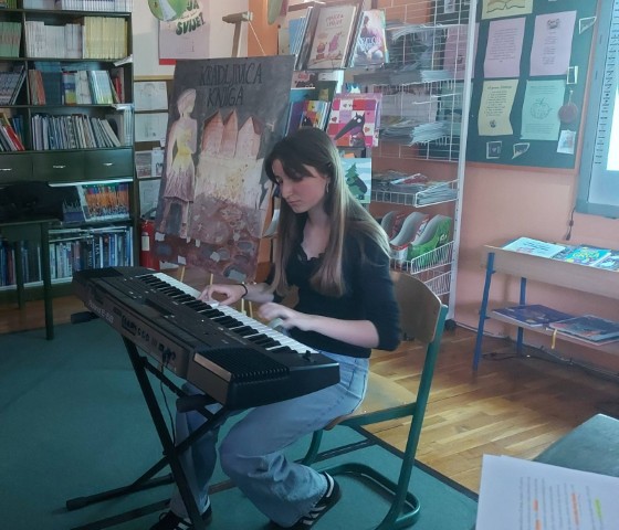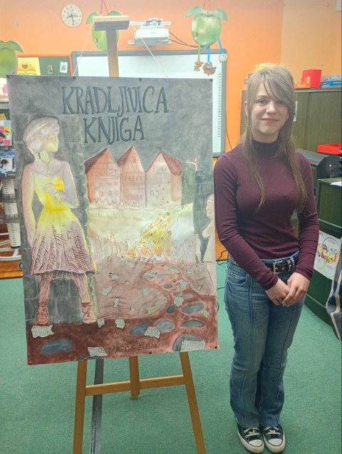 U knjižnici OŠ Nedelišće obilježena je Noć knjige 2026. Pobratimstvo lica u svemiru, prema pjesmi Tina Ujevića, naziv je ovogodišnje nacionalne manifestacije, a mir među ljudima i zajedništvo, glavne teme na koje potiče ova Noć knjige. Kako se diljem zemlje 23. travnja promiče kultura čitanja i organiziraju aktivnosti vezane uz knjigu, tako su i naši učenici 7. i 8. razreda obilježili ovaj događaj i odvažili se na dugačko, uzbudljivo i dirljivo književno putovanje, u kojem se važnost riječi i književnosti, umjetnosti i ljubavi spominje u kontekstu najvećih ljudskih stradanja – čitali su roman Kradljivica knjiga australskog pisca Markusa Zusaka. Učenici su povezivali znanja iz predmeta Hrvatski jezik i Povijest, Glazbena kultura i Likovna kultura: učenica Beata Horvat odsvirala je skladbu J. S. Bacha, učenica Vita Dolar kreativnim je uratkom dala svoje likovno viđenje romana izradom upečatljivog plakata, a svi su učenici, s učiteljima koji su prisustvovali, razgovarali o najvažnijim pitanjima romana, razmijenili iskustva čitanja i motivirali druge učenike da i oni pročitaju ovo važno književno djelo.