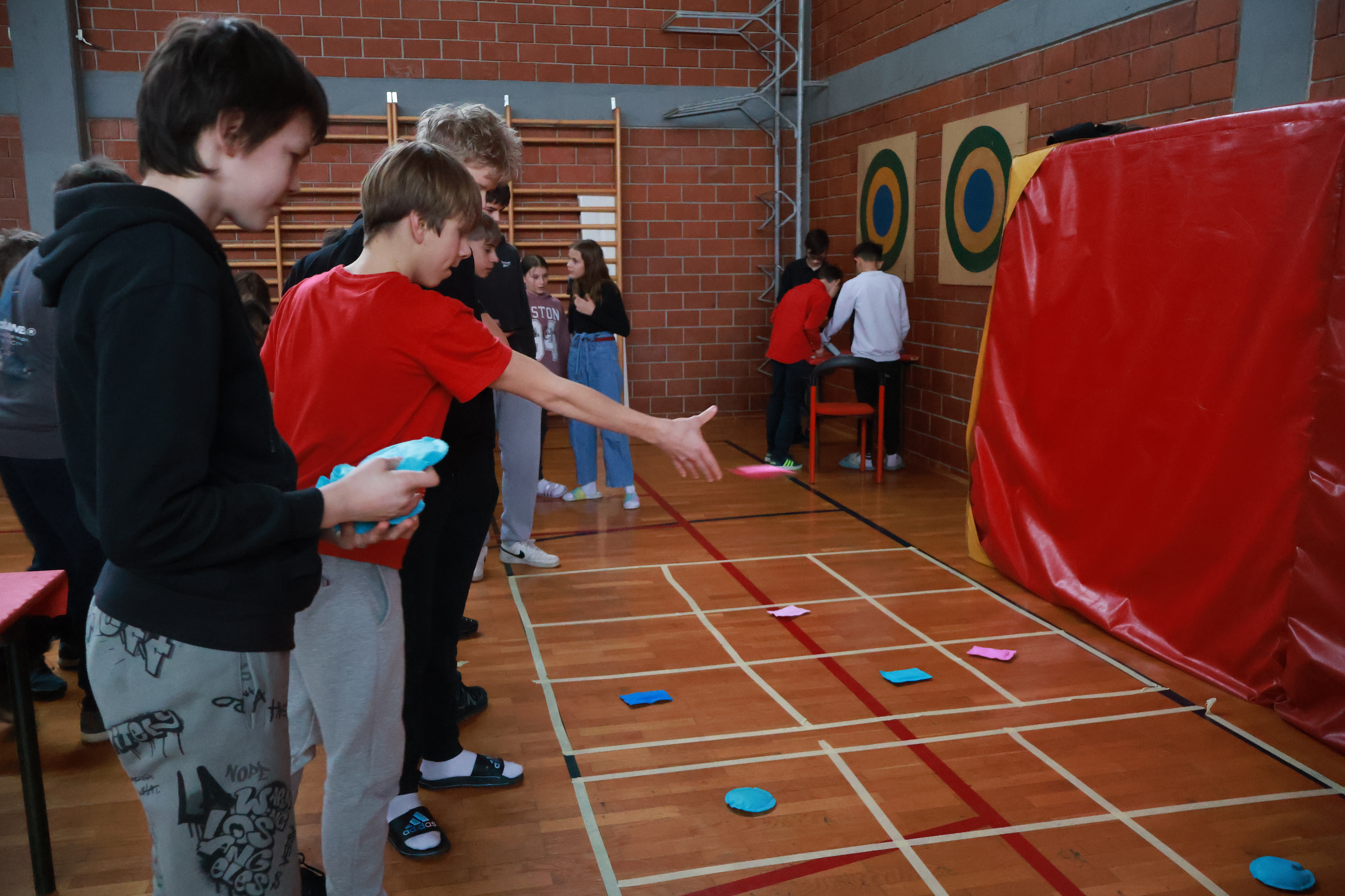 A što se sve miješalo u valentinovskom mixeru? Sljedeće zabavne aktivnosti i igre poput: Znam te, znaš me?, Brzopotezni križić-kružić, Kravata majstor, Munjeviti štapići, Trick shot challenge , Photo booth, Narukvice prijateljstva, Zid prijateljstva – pružile su našim učenicima priliku da se zabave, bolje povežu, upoznaju i druže. Učitelj Veljko Posavec sa svojom je likovnom grupom uvelike pridonio vizualnom identitetu zabavnih kutaka, a sjajne momente ovjekovječio je naš školski fotograf Nikola Bistrović sa svojom mladom fotografskom ekipom. Zahvaljujemo svim učiteljicama i učiteljima na punktovima, onima koji su sudjelovali u pripremi, onima koji su pružili tehničku podršku i onima koji su pokazali dobru volju i podržali ovaj hvalevrijedan projekt povratka nekim starim i boljim vrijednostima druženja uživo.
