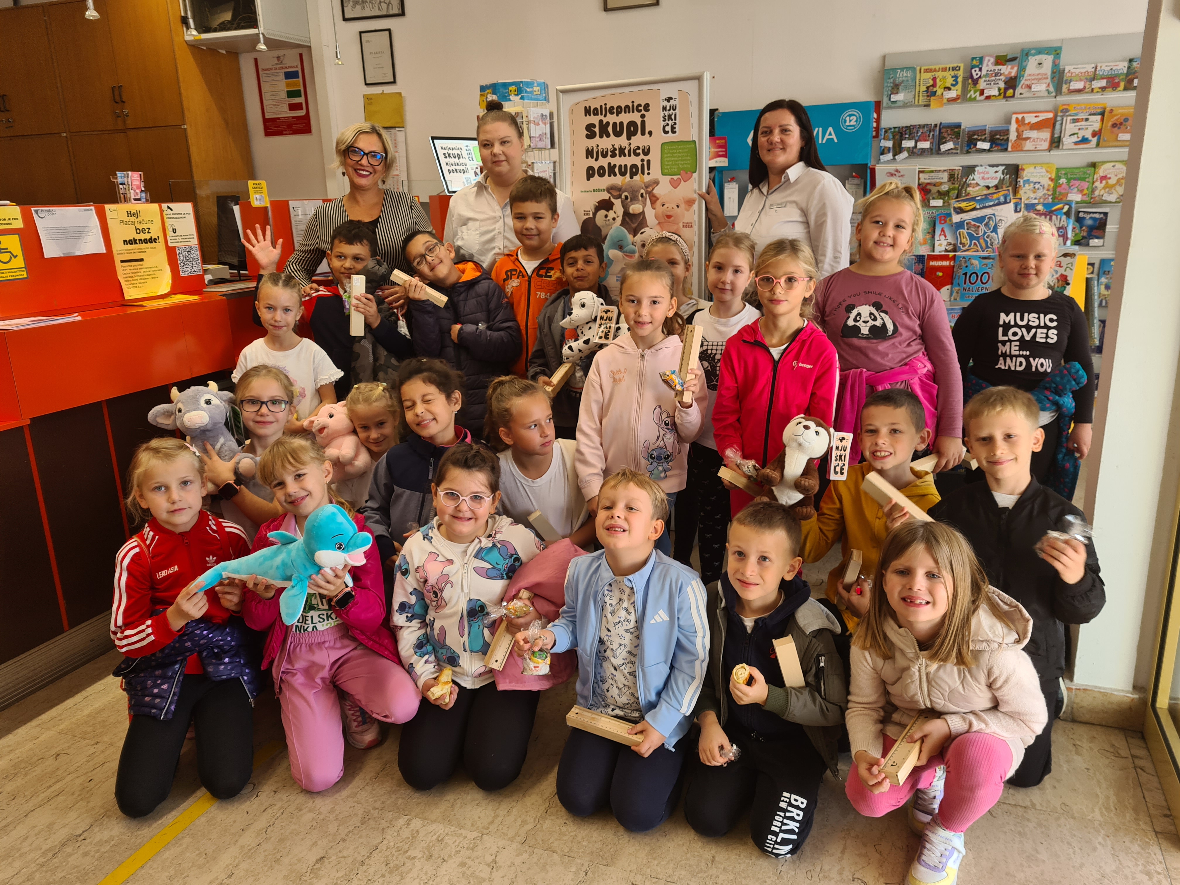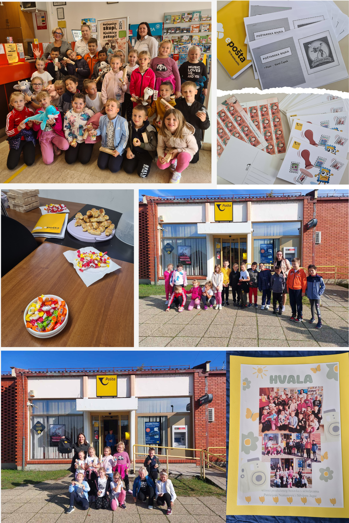 Učili smo o filateliji, proučavali album s poštanskim markicama, čitali knjige o poštarima, a zatim su učenici sami dizajnirali poštanske markice. Učenici koji znaju pisati, pisali su pisma boravkašima u PŠ Dunjkovec, a i sami su od njih primili pisma. Najzanimljivije je bilo kad smo 10. listopada 2025. posjetili ured Hrvatske pošte u Nedelišću. Djelatnice su bile vrlo ljubazne i priredile nam pravi doček. Na vrlo zanimljiv način objasnile su nam što je njihov posao, a zatim smo dobili i prigodne darove: klipiće, paketiće sa slatkišima, kutijice, knjige Poštarske bajke. Dobili smo i razglednice s markicama pa su ih učenici idućih dana naučili pravilno popunjavati i adresirati. S veseljem su se vratili u poštanski ured kako bi ih poslali svojim najmilijima, a zatim su se počastili sa školskim priborom, igračkom ili nekom drugom sitnicom koju su sami odabrali.